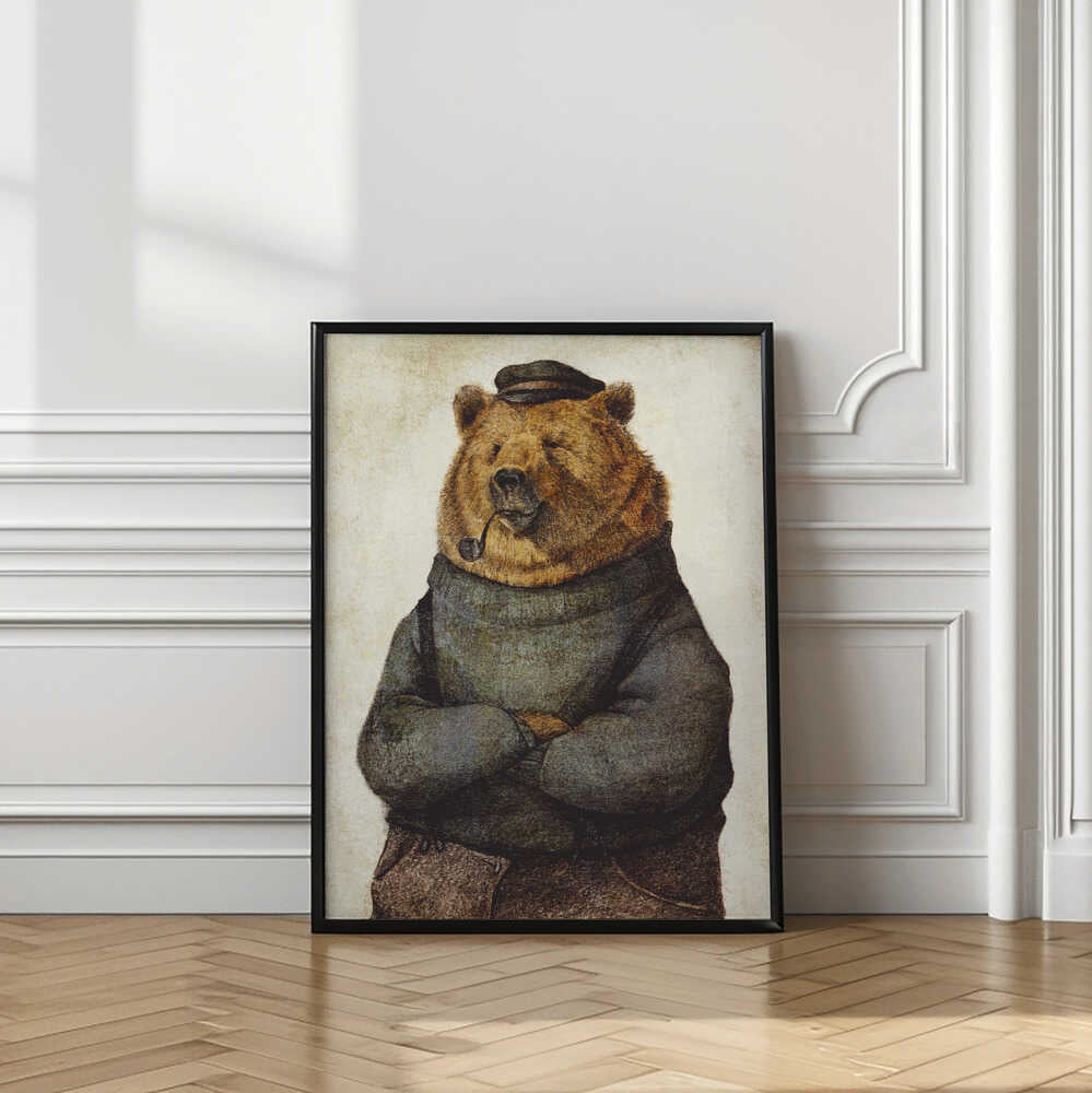 Bear Dressed In A Sweater And Cap by Mike Koubou
