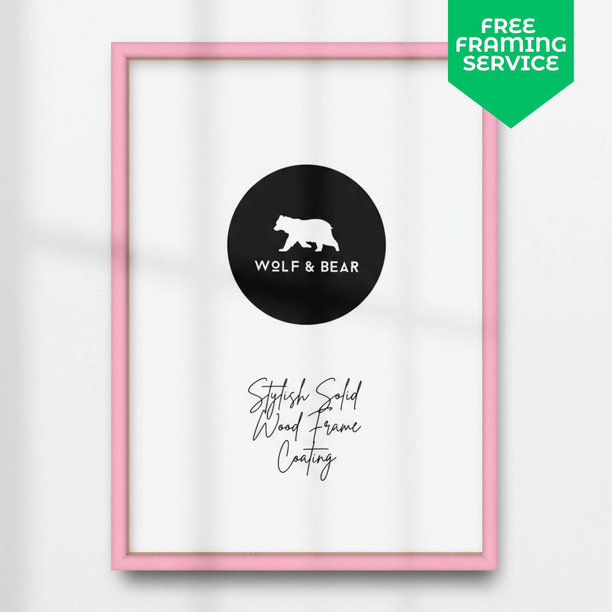At Wolf & Bear, we offer frames in sizes ranging from 30×40 cm to 50×70 cm. As a small business,  our standard collection features only sleek matte black frames. However we now offer other colours which are hand crafted in the UK.