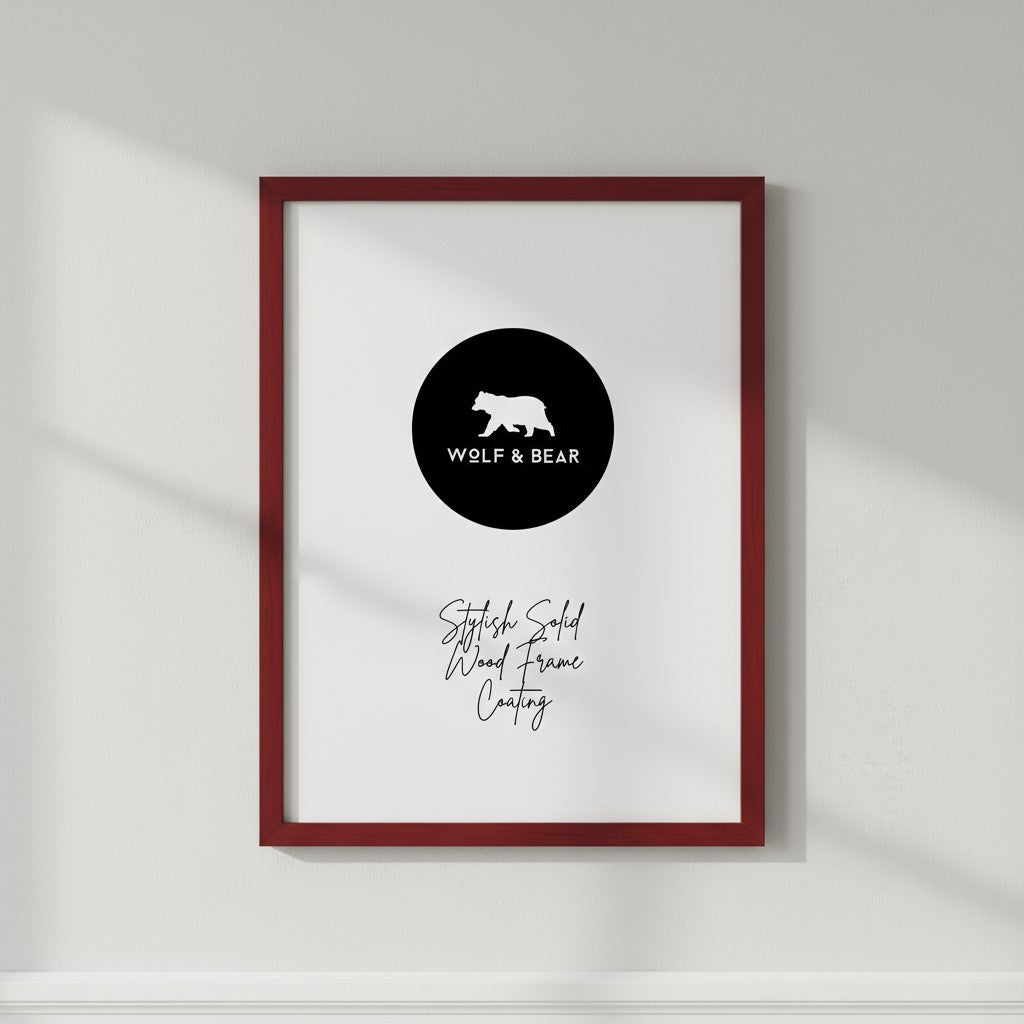At Wolf & Bear, we offer frames in sizes ranging from 30×40 cm to 50×70 cm. As a small business,  our standard collection features only sleek matte black frames. However we now offer other colours which are hand crafted in the UK.
