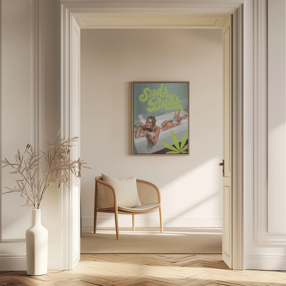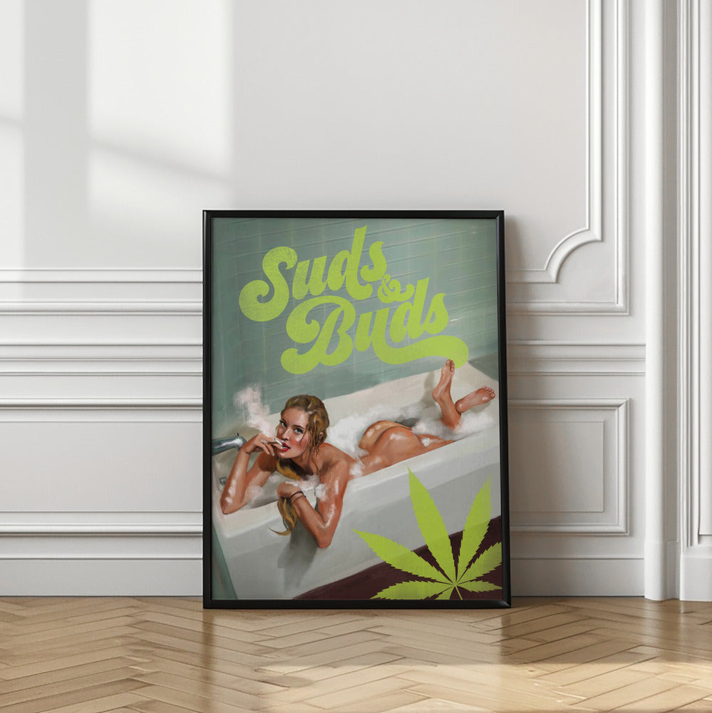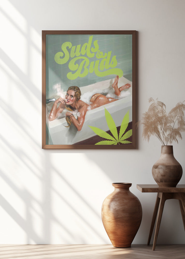 Suds Buds Sexy Girl Smoking Cannabis Joint In Bath by The Whiskey Ginger