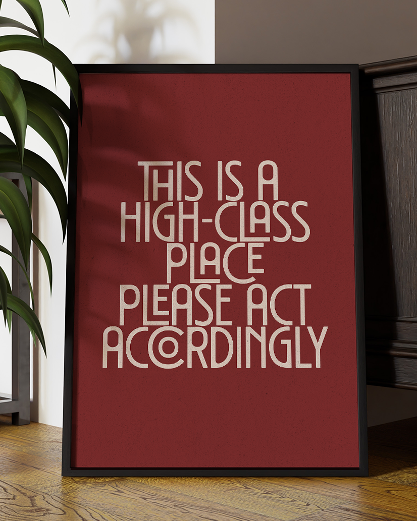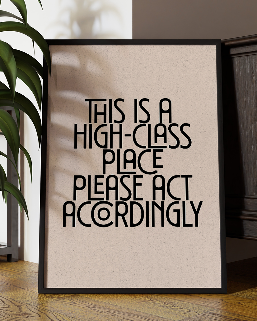 This Is a High-Class Place Please Act Accordingly Fun Quote Wall Art Print – Modern Typography Home Decor Poster - Multiply Colours Available