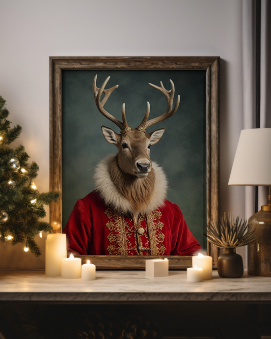 Festive Christmas Reindeer Portait | Altered Reindeer Wall Art- Regular price