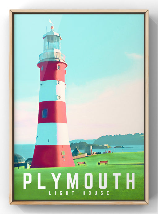 Plymouth Lighthouse Travel Poster Print- Regular price
