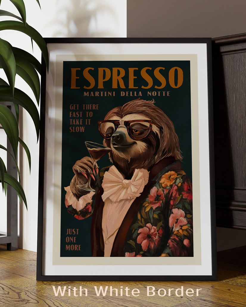 Art Deco Espresso Martini Drinking Sloth by The Whiskey Ginger
